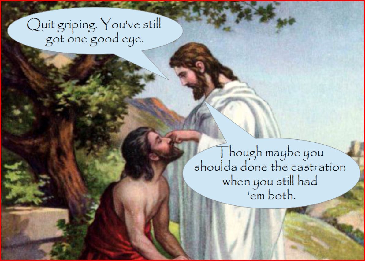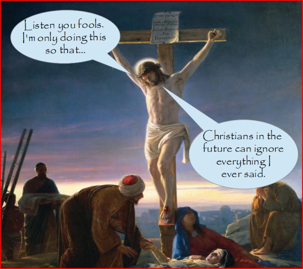 This laughable nonsense beautifully encapsulates religious belief; take on the outer aspects of a faith, including its language and its rituals, and reinterpret them in whatever way suits you. That way, showing the love the saviour commands means treating others with contempt; fasting to get God to do what you want really means filling your belly; following Jesus means ignoring most of what he said and doing what you like.