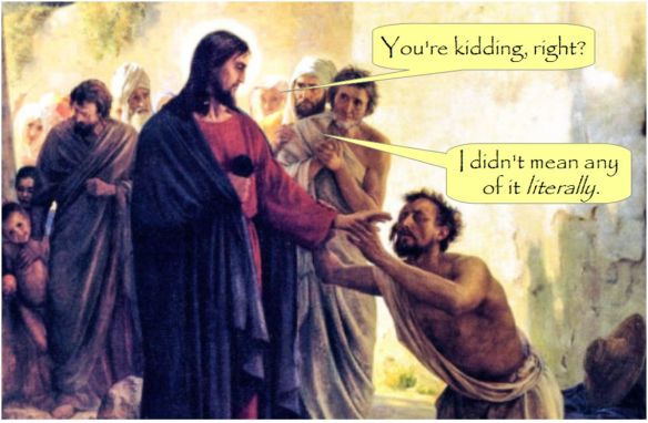 Which is to say, nothing Jesus said is to be taken literally, even though the most straight forward reading of his pronouncements is that this is how he meant them. It’s how his early followers, the people who preserved or created his words in the gospels, understood them. Why record them otherwise?