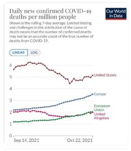 Yet still they impose such a mandate, this time with a £200 fine for the first ‘offence’ of failing to wear a mask in the specified locations. If masks were effective, then Scotland, which unlike England did not dispense with them back in the summer, would have fewer cases of Covid than England. In fact, it has considerably more. Likewise Germany, which imposed the compulsory wearing of high standard FFP-2 surgical masks back in January. Meanwhile mask-free England (free that is until yesterday) has seen cases and hospitalisations falling.