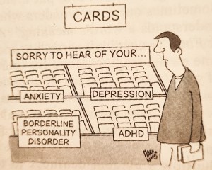 Mental Health issues and the medicalised labelling of ordinary human behaviours. We all have mental health issues; this is what it is to be human. Some, it is true, have more than others. Determining an individual has ‘mental health issues’ forces him or her to become his or her issues. Instead of being prone to depression (as I was) or anxiety, the individual who experiences these is now ‘neuro-diverse’. Instead of suffering from a condition the individual could do something about they become that condition. Some people, usually males, used to be diagnosed as autistic. Now that autism is seen as a spectrum, everyone is deemed to be on it somewhere; everyone as a result is autistic. People become trapped in their condition with no way out, lifelong treatment the only recourse.