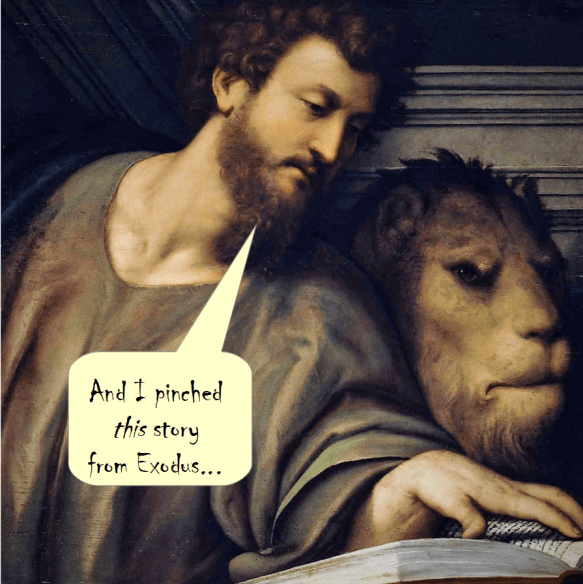 He constructs the narrative using additional ‘prophecies’ he finds in the scriptures. For example, the trip to Bethlehem and the flight to Egypt, neither of which happened (no other gospel writers knows of them.) The Egypt episode is an imaginative (and dishonest) expansion of Hosea 11:1: ‘Out of Egypt I called my son’. In context, the verse refers to the Jewish nation not a future Messiah. And who led the Israelites out of Egypt? Moses.