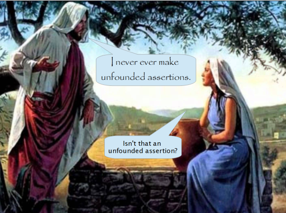 Don likes to take me to task for what he says are assertions in my arguments. I do make assertions, as do we all, because not all points in an argument need to be demonstrated every time they’re used. Indeed, not all assertions can be.
